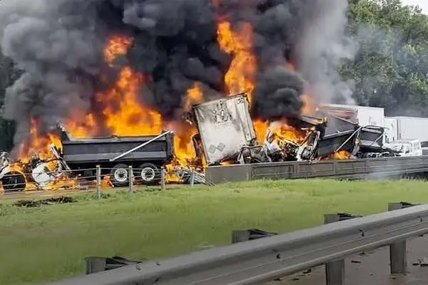 یک کامیون پس از برخورد با کامیون جلویی در آفریقای جنوبی آتش گرفت. در این حادثه یک نفر زخمی شد.