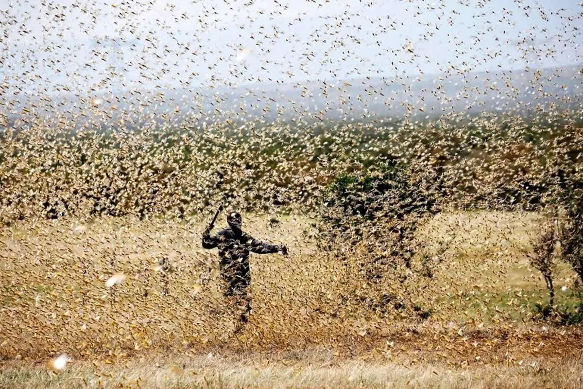 تصاویر، هجوم میلیون ها ملخ به یک بزرگراه در صحرای بزرگ شمال آفریقا نشان میدهد.