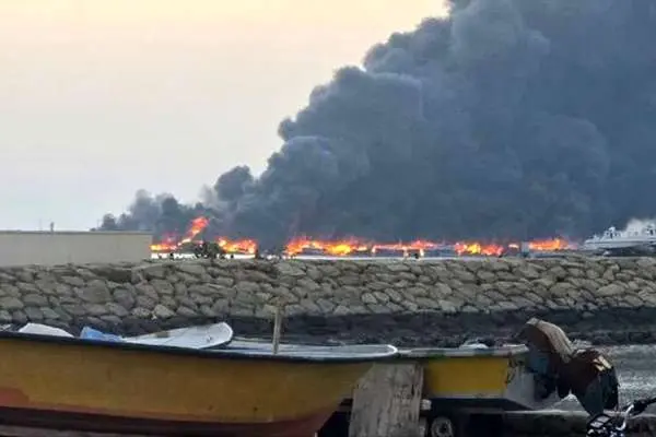 حمله به اسکله صیادی در جاسک/ ۱۰۰ فروند لنج دچار حریق شد