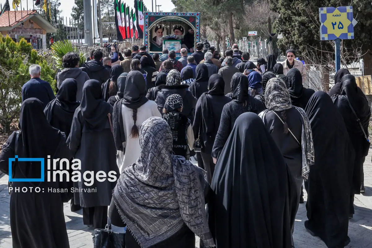 مراسم تدفین پیکر شهدای حملات آمریکا و رژیم صهیونیستی در بهشت زهرا، امروز چهارشنبه (۱۳ اسفند ۱۴۰۴) در قطعه ۴۲ بهشت حضرت زهرا (س) برگزار شد.