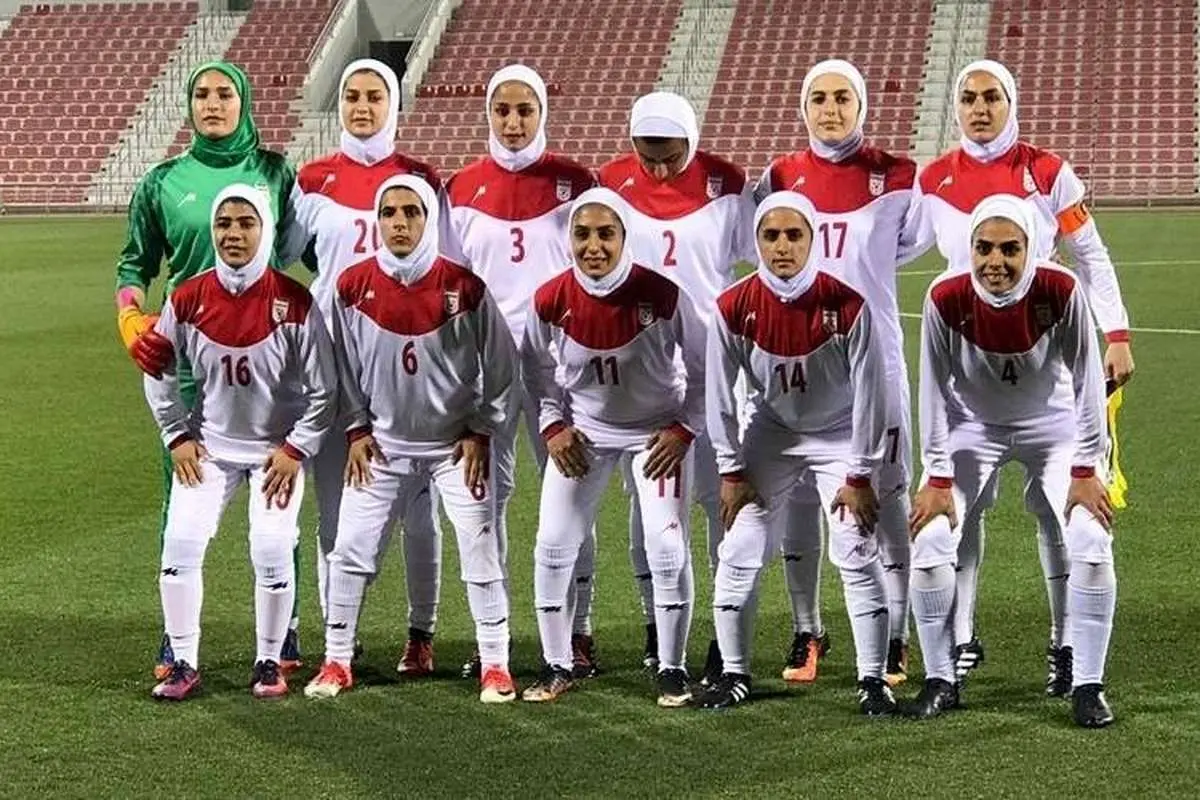 سلام نظامی اعضای تیم ملی فوتبال زنان ایران قبل از بازی با استرالیا