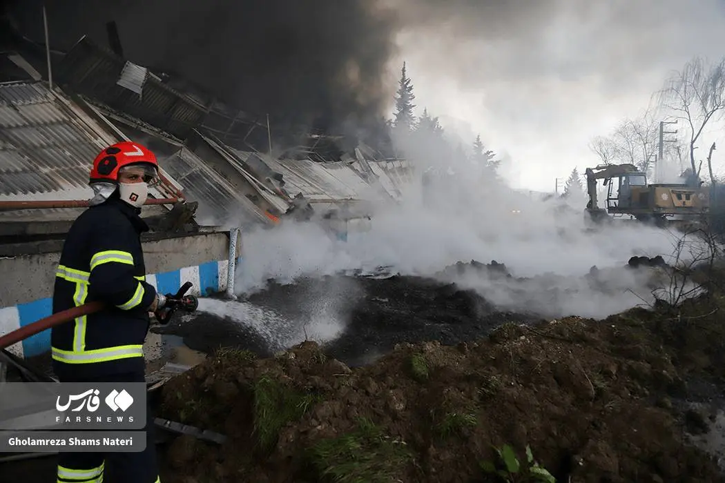 تصاویر؛ آتشسوزی در کارخانه تکنخ نوشهر