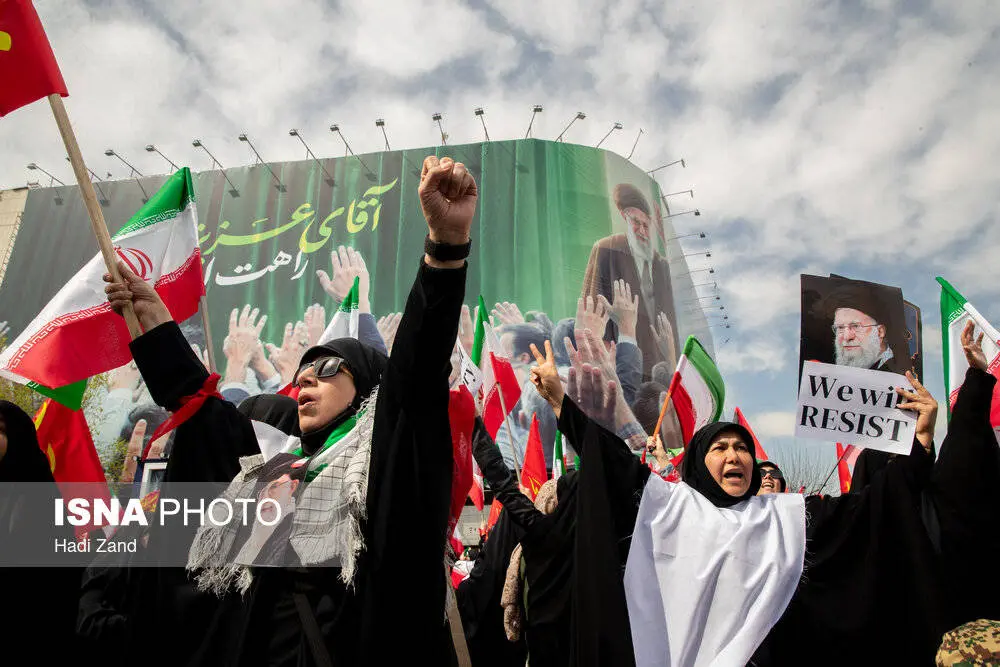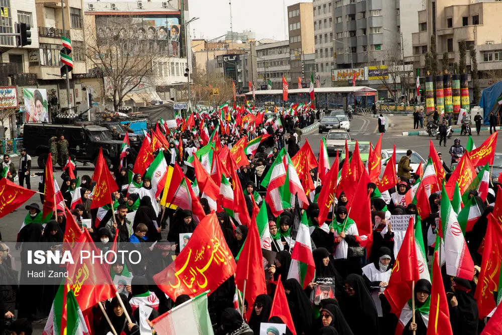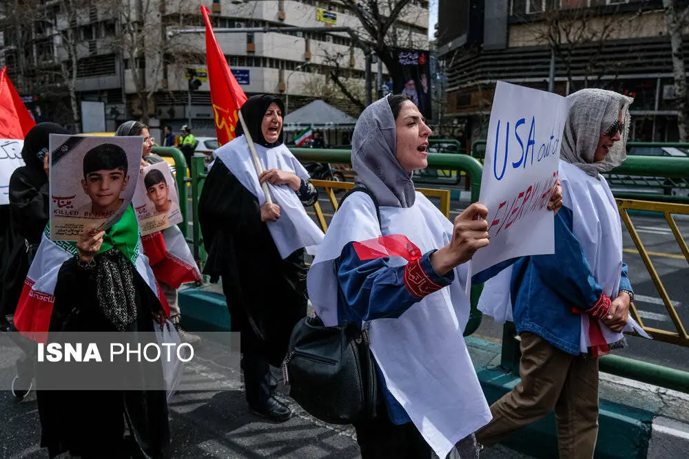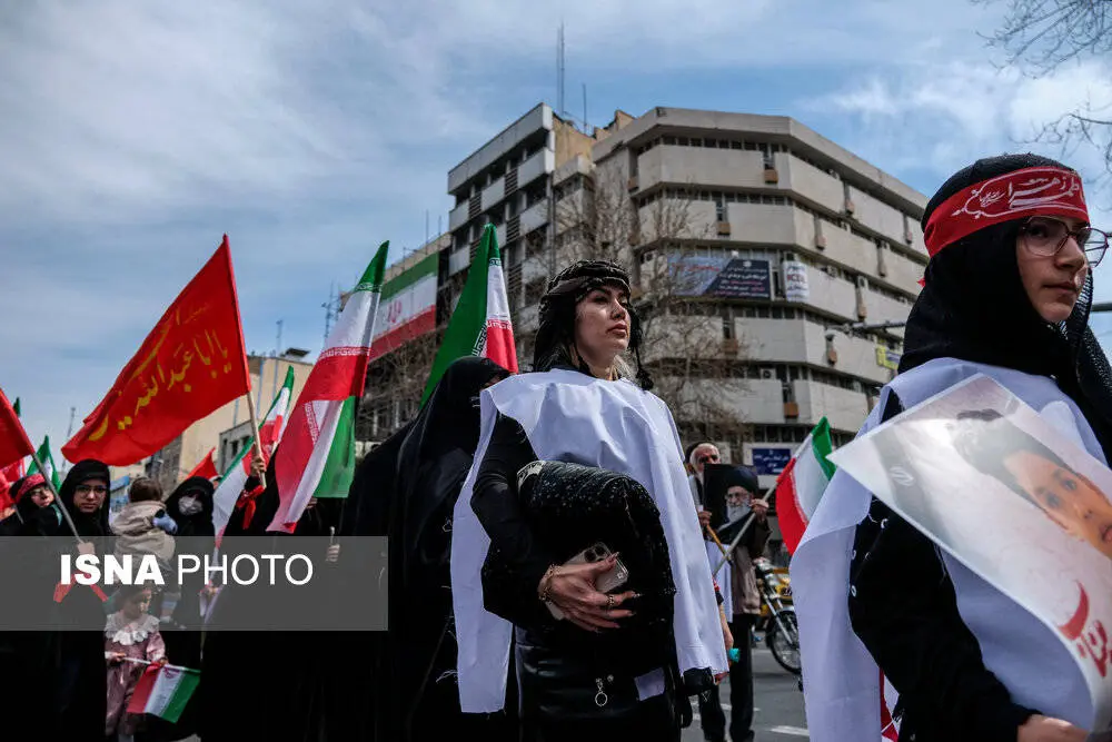 ظهر امروز، شنبه ۱۶ اسفند ۱۴۰۴، جمعی از بانوان تهرانی در محکومیت و انزجار جنایات آمریکا و رژیم صهیونیستی راهپیمایی کردند.