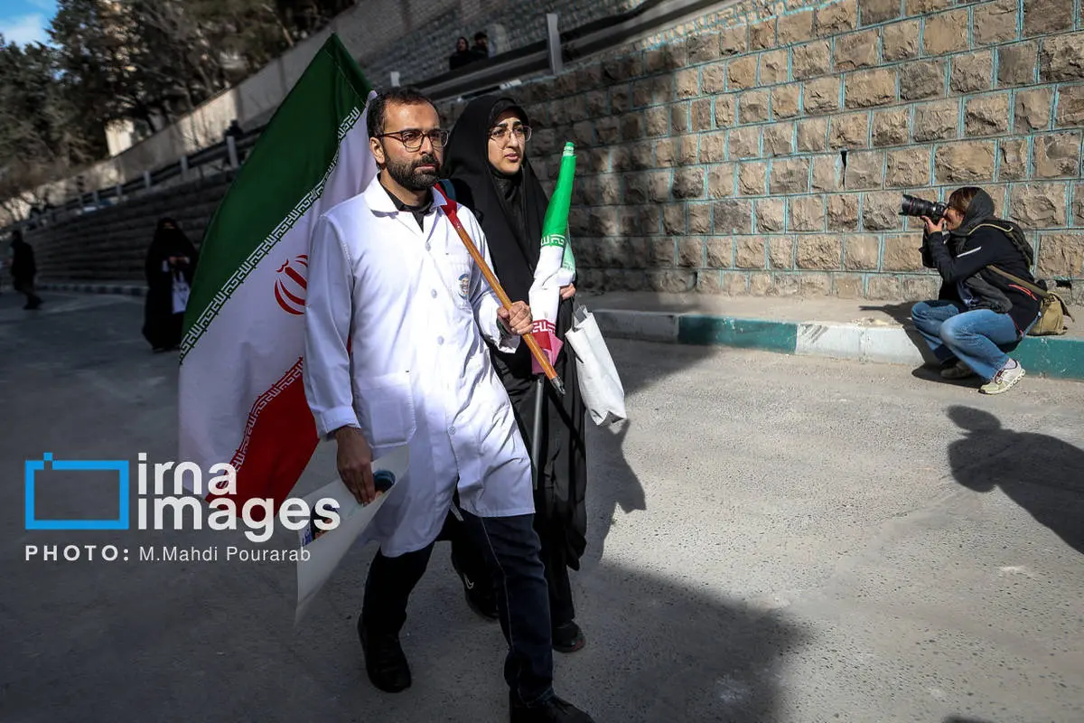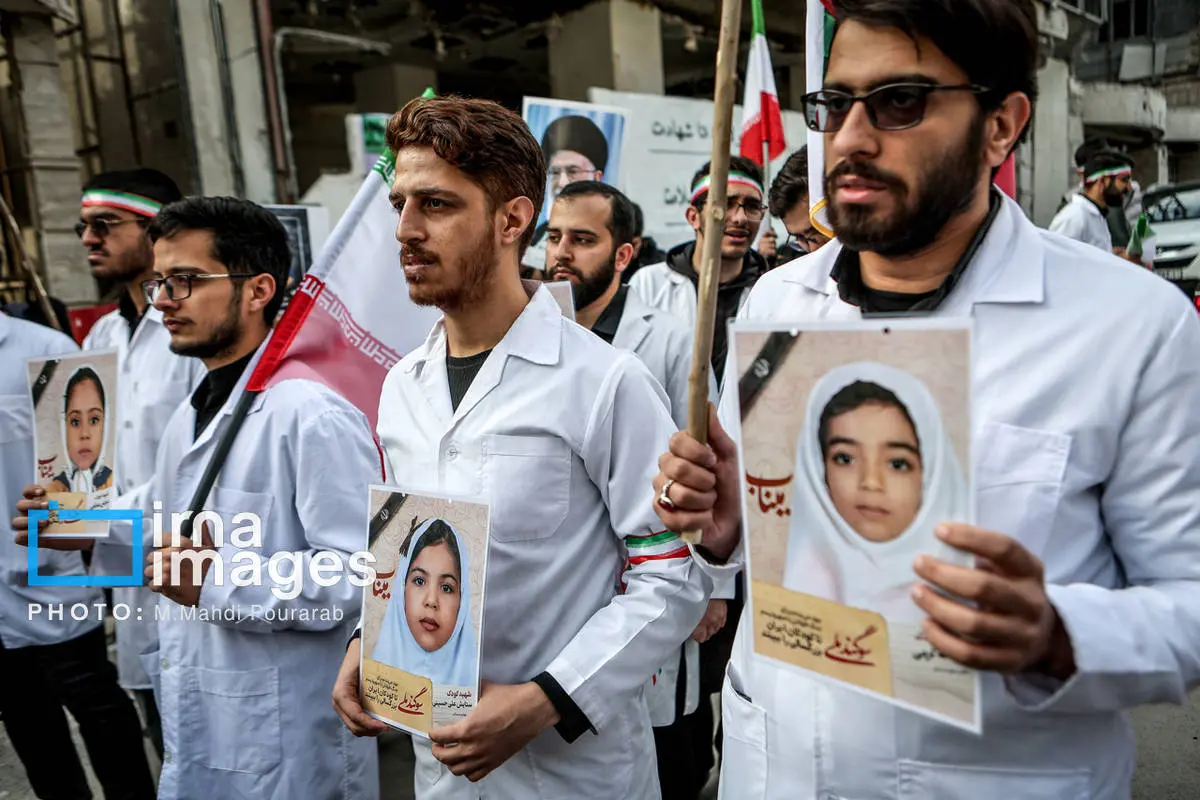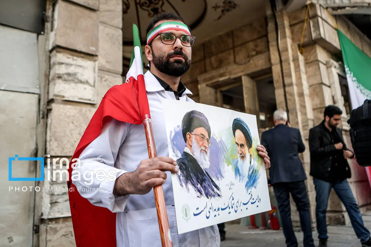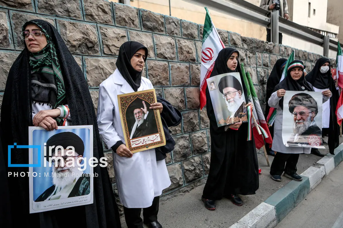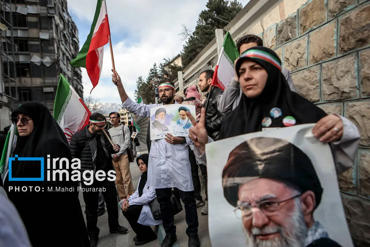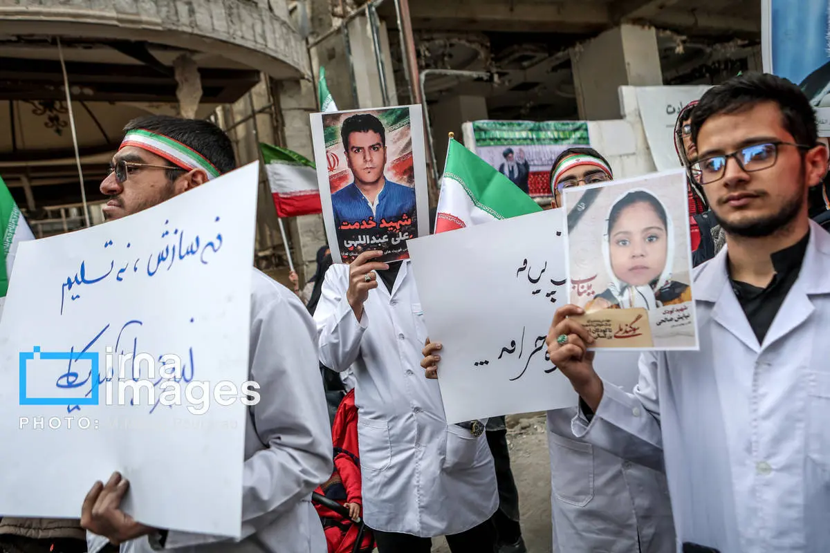کادر درمان کشور در اعتراض به حملات هوایی آمریکا و رژیم صهیونیستی، عصر شنبه (۱۶ اسفند ۱۴۰۴) مقابل بیمارستان گاندی تجمع کردند.