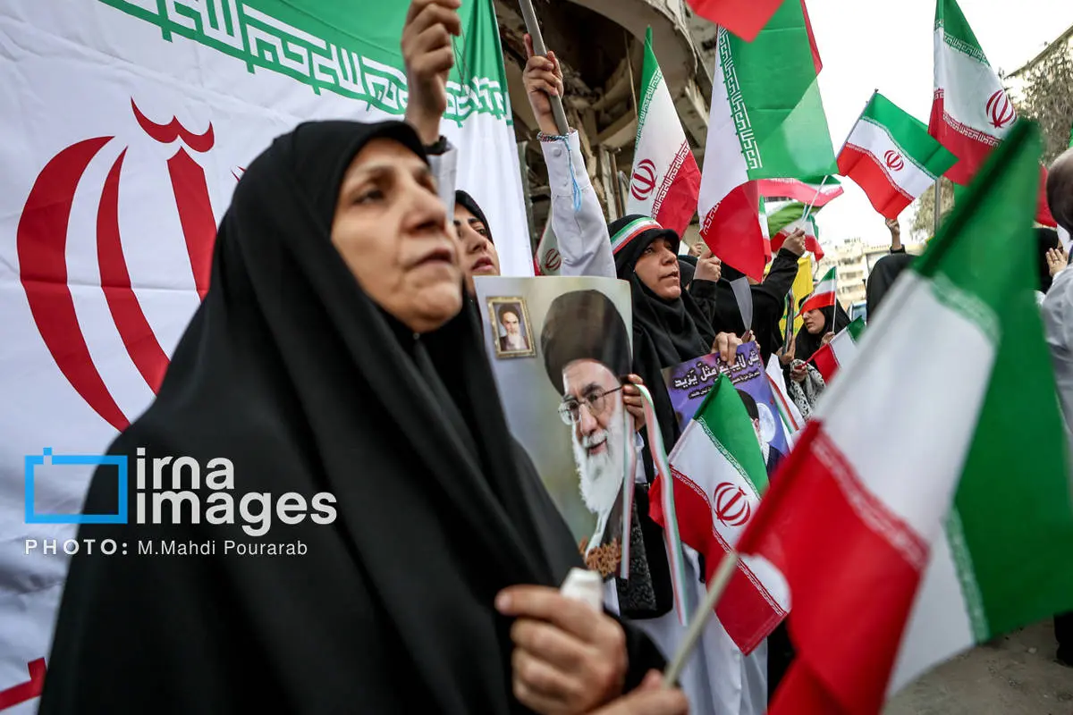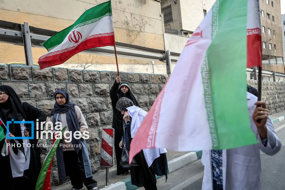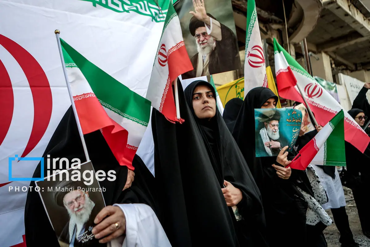 ظهر امروز، شنبه ۱۶ اسفند ۱۴۰۴، جمعی از بانوان تهرانی در محکومیت و انزجار جنایات آمریکا و رژیم صهیونیستی راهپیمایی کردند.