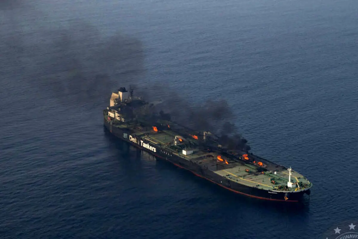 (عکس) غرق شدن یک نفتکش در تنگه هرمز