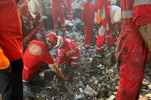 تصاویری از تلاش امدادگران هلال احمر در پی حمله به منازل مسکونی ارومیه را می بینید.